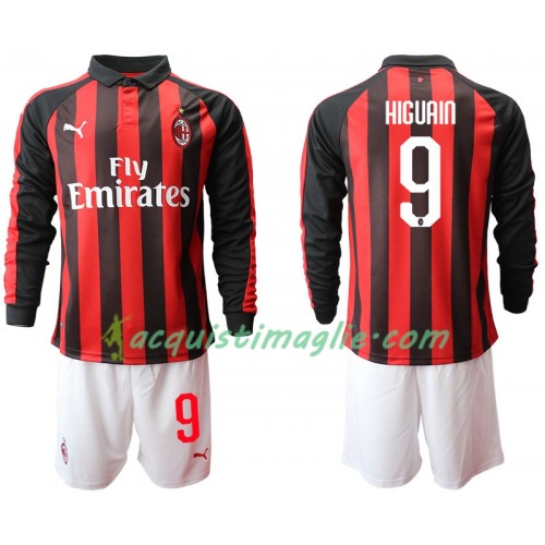 Divisa di Calcio AC Milan HIGUAIN 9 Bambino Prima 2018/2019 Manica Lunga