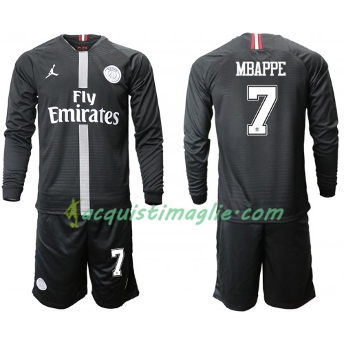 Divisa di Calcio Paris Saint Germain MBAPPE 7 Jodan Nero Bambino Terza 2018/2019 Manica Lunga