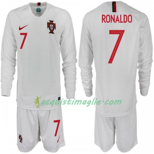 Divisa di Calcio Portogallo RONALDO 7 Bambino Trasferta Mondiali 2018 Manica Lunga