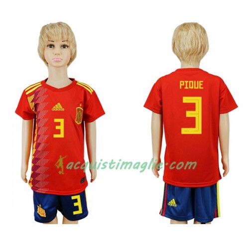 Divisa di Calcio Spagna Pique 3 Bambino Prima Mondiali 2018