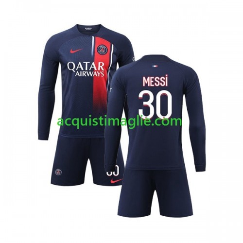 Divisa di Calcio Paris Saint Germain PSG Lionel Messi 30 Bambino Prima 2023/2024 Manica Lunga