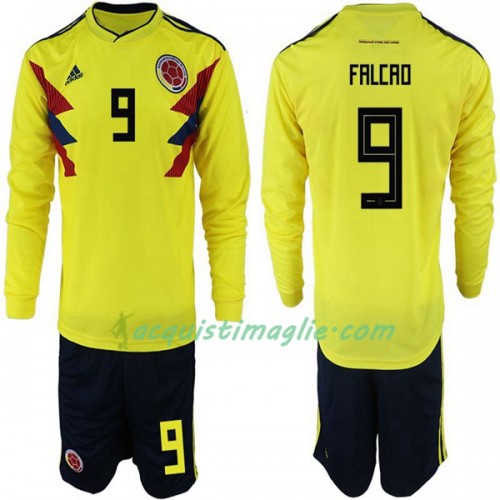 Divisa di Calcio Colombia Falcao 9 Bambino Prima Mondiali 2018 Manica Lunga