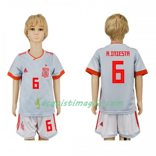 Divisa di Calcio Spagna A_Iniesta 6 Bambino Trasferta Mondiali 2018